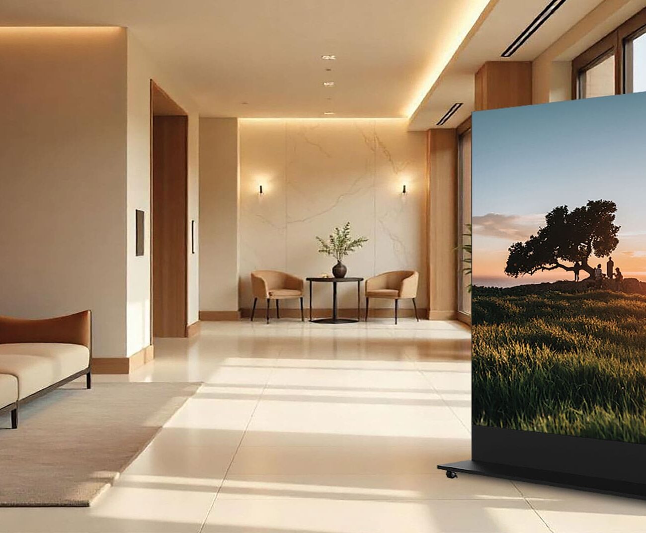 미세한 픽셀로 구현되는 고해상도 COB 기술을 적용한 스탠드형 디지털 전광판은 뛰어난 색 표현력과 탁월한 시인성으로 실내 어디에서나 생생한 영상을 전달합니다. 안정성과 내구성까지 겸비해 장시간 운용에도 완벽한 퍼포먼스를 자랑합니다.
