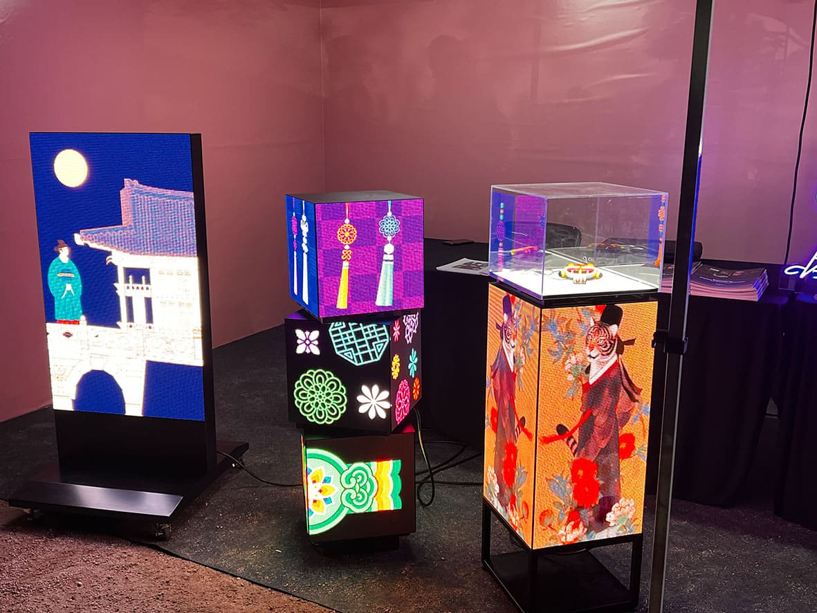 [경복궁 한복 연향] 국가문화유산과 첨단기술의 만남 대한민국을 대표하는 경복궁, 국가 중요 문화재이자 일반 기업의 전시 참여가 극히 제한된 이 공간에서, 디지털사이니지 전문기업 DFLUX와 자회사인 네온사인 브랜드 HELLO