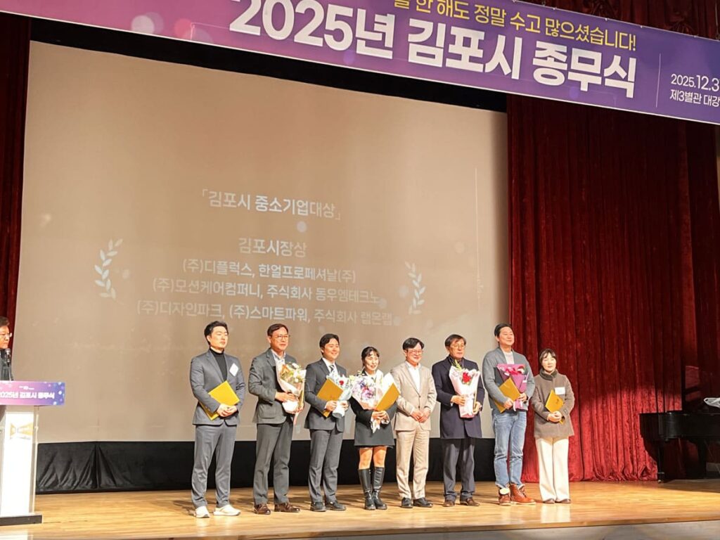 디플럭스, ‘제30회 김포시 중소기업대상’ 창업기업 분야 수상 디플럭스가 ‘제30회 김포시 중소기업대상’ 창업기업 분야 수상기업으로 선정되었습니다. 김포시 중소기업대상은 1996년부터 이어져 온 김포시 중소기업 분야의 대표 시상으로, 관내 우수 기업을 발굴·격려하기 위해 매년 추진되고 있습니다. 시상은 김포시 종무식에서 진행되었고, “창의적인 노력과 도전정신으로 산업 경쟁력을 높인 성공창업의 모범”이라는 평가와 함께 상이 수여되었습니다. 이번 수상은 디플럭스가 창업 이후 꾸준히 이어온 도전과 실행, 그리고 시장과 현장에서 필요로 하는 가치를 빠르게