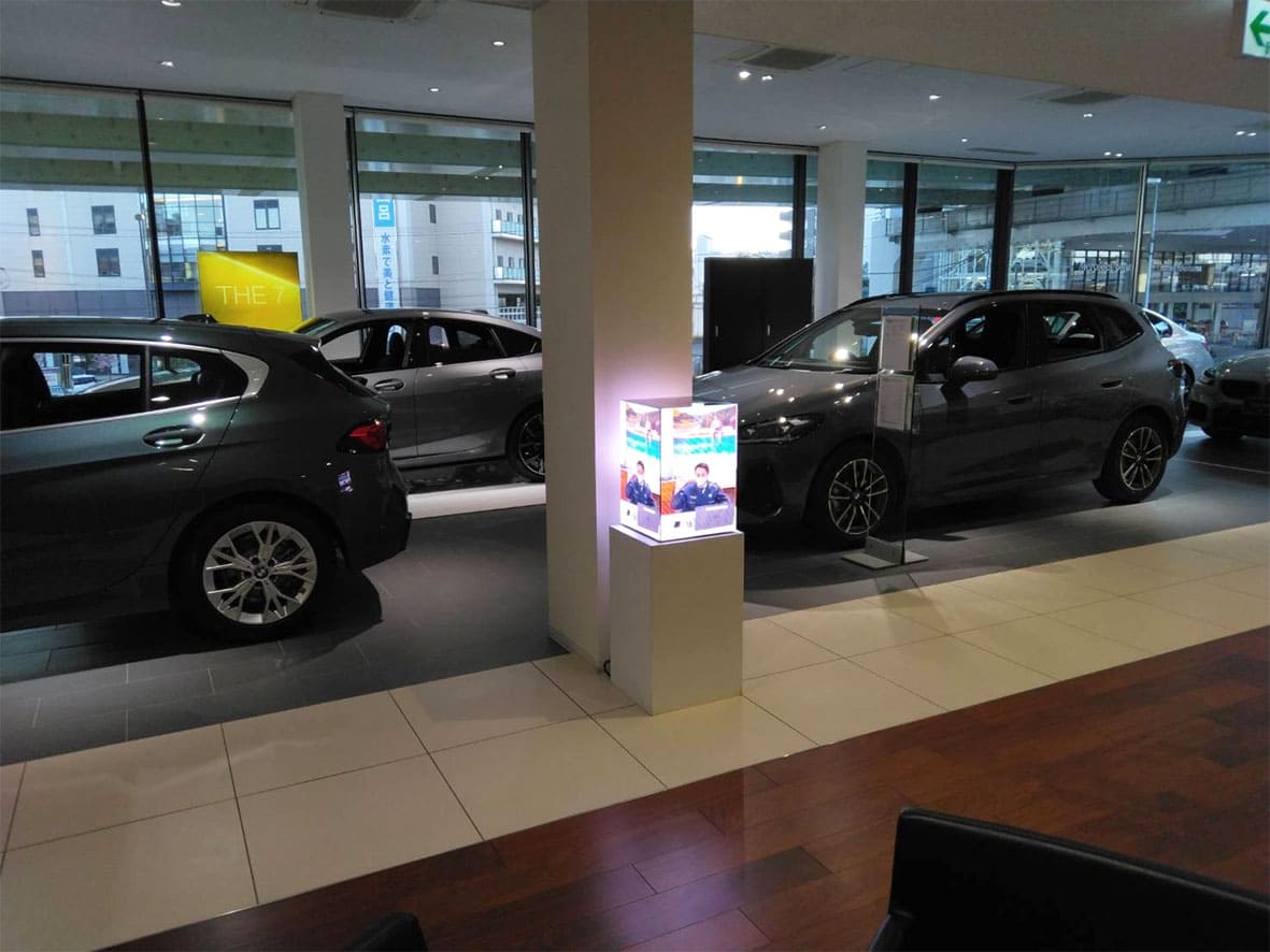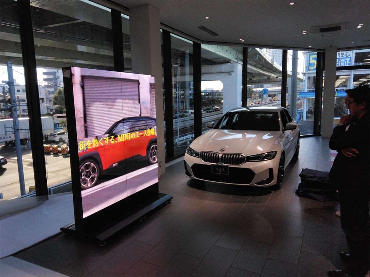 일본 요코하마 BMW <옥외 스탠드 디지털 전광판> ・피치: P 3 (pitch)・모듈타입 : SMD타입・화면밝기 : ≥5,000cd・제품 크기 : 770mm X 1,920mm <실내 전시 디지털 전광판> ・피치: P2.5 (pitch)・모듈타입 : SMD타입・화면밝기 : ≥5,000cd・제품 크기 : 320mm X 500mm X 320mm Project name: BMW Date: 2025-11-10 Category: 상업시설 일본 Share:
