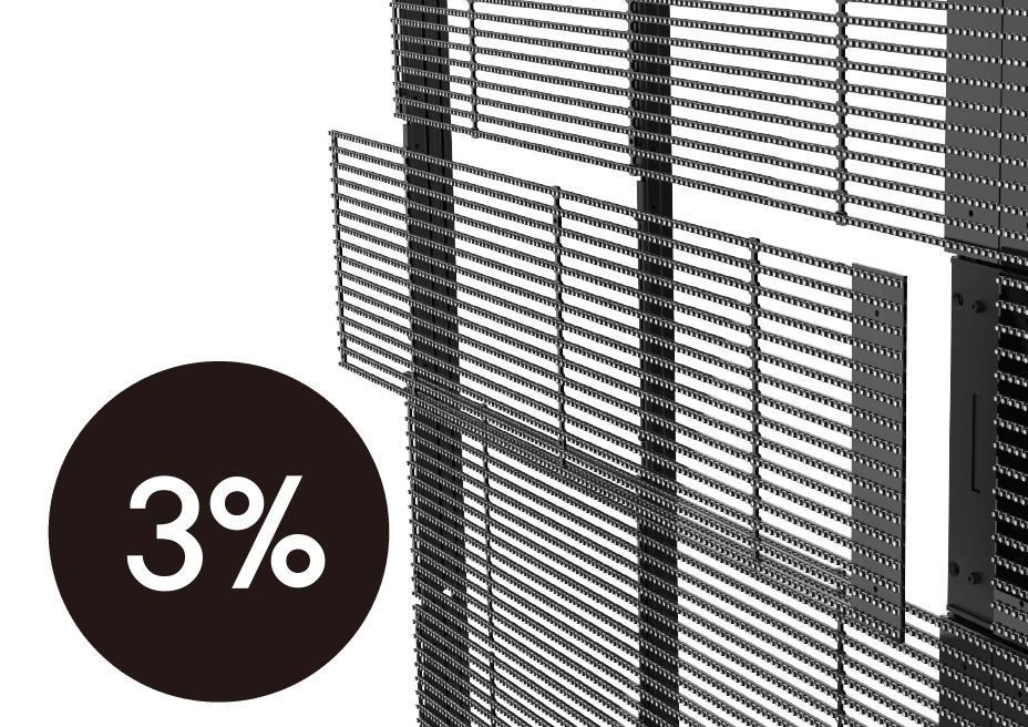 높은 투명도와 강한 내구성을 갖춘 LED 디스플레이로, 바람과 빛을 통과시키면서도 선명한 화질로 광고 효과를 극대화하는 솔루션입니다. 가벼운 구조와 에너지 효율적인 설계로 설치가 용이하며, 건물 외벽, 옥외 광고판, 공연장, 경기장 등 다양한 야외 환경에서 활용됩니다.